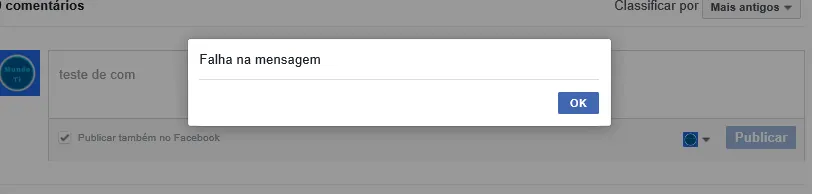 Bom eu fiz um site com vários conteúdos (que estão guardados, no banco de dados MySql), a ideia é que para conteúdo acessado pela pessoa, ela possa postar comentários pelo facebook, mas não deu muito certo… O campo de comentário aparece, mas quando eu digito algo, e clico em “Publicar”, ele me mostra uma mensagem “Erro na mensagem”, não sei o que é…
