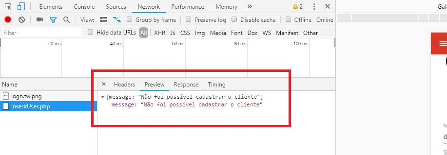 Até ai tudo ok, mais na hora q executo para inserir os dados ele me retorna o erro de mensagem q eu adicionei na api, e não envia os dados para o banco, alguem para me ajudar a identificar oque está acontecendo.