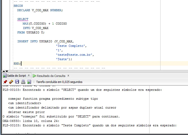 DECLARE, sem BEGIN