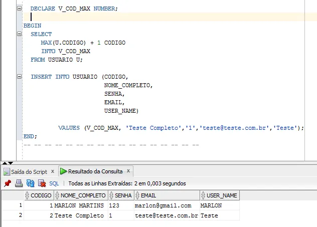 DrsMachado não estou executando o código citado por uma procedure no momento.