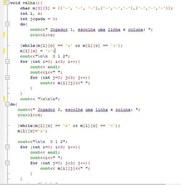 }while(m[l][c] == ‘x’ or m[l][c] == ‘o’);