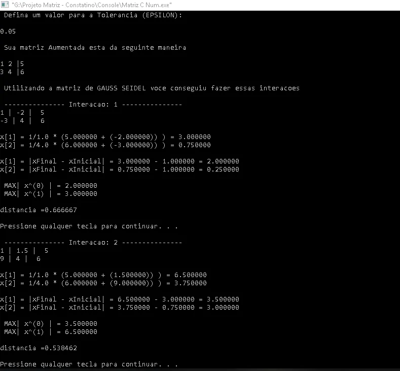 Acabei conseguindo Resolver o problema irei atualizar os comandos no GITHUB e deixo disponível para vocês. a ideia do programa é calcular matrizes pelo método iterativo de GAUSS SEIDEL e JACOBBI