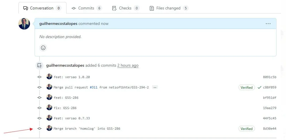 No projeto dentro site do GitHUB, quando faço um Merge Request de uma branch para homologa, ele faz normal, só que automaticamente ele faz um merge da branch homologa para a branch atual.