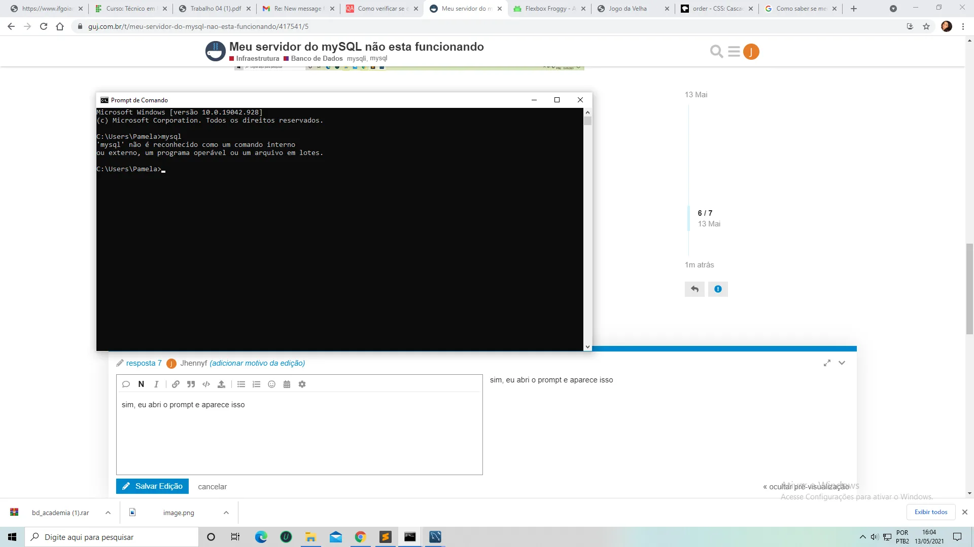 oi gente, estou com um grande problema no meu MySQL e não consigo solucionar, eu sou nova na área e não tenho idea do que fazer algém pode me ajudar???