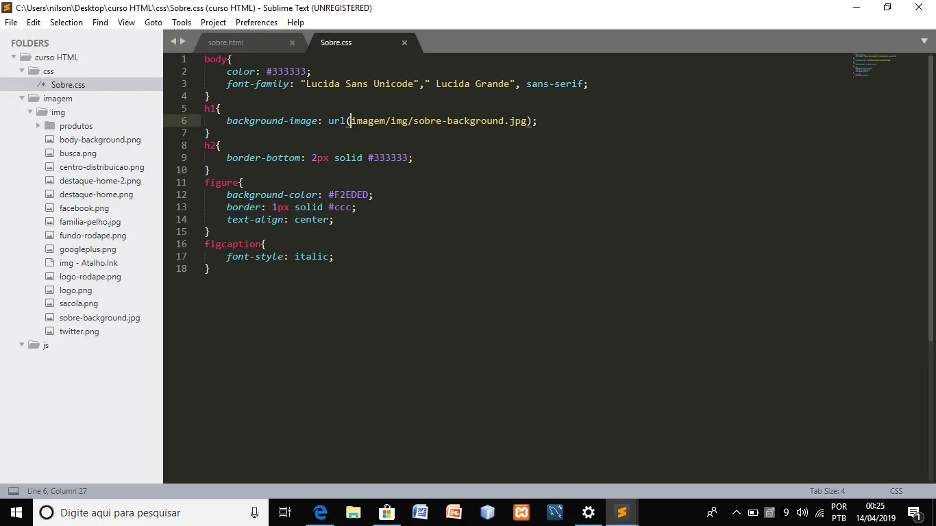 Criei a pasta sobre.css conforme abaixo: