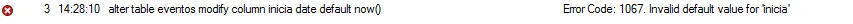 E quando eu tento alterar o valor do campo manualmente para NOW(), eu recebo essa mensagem: