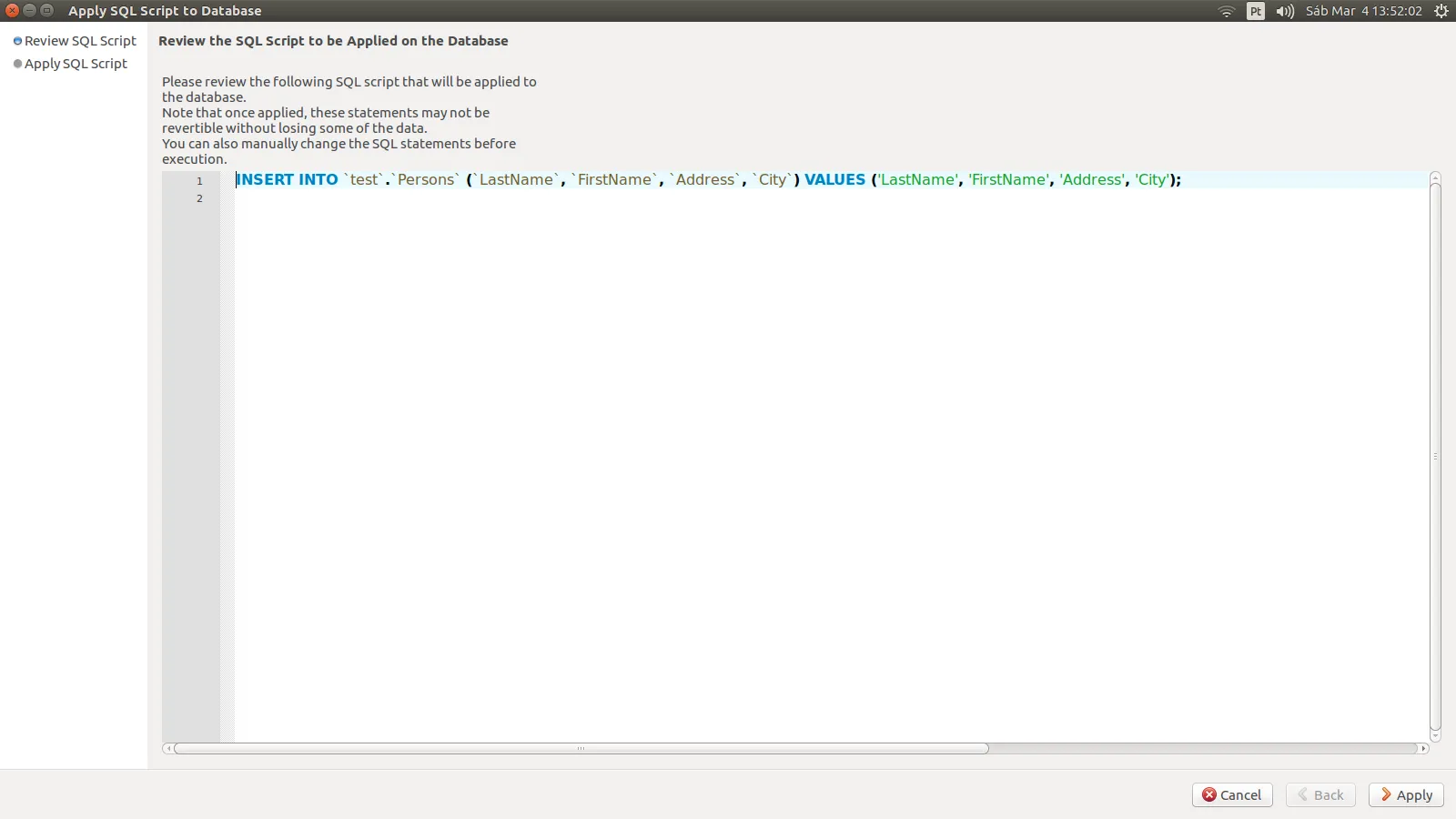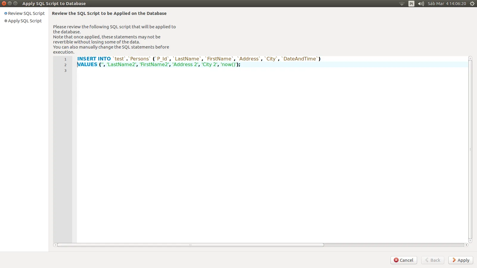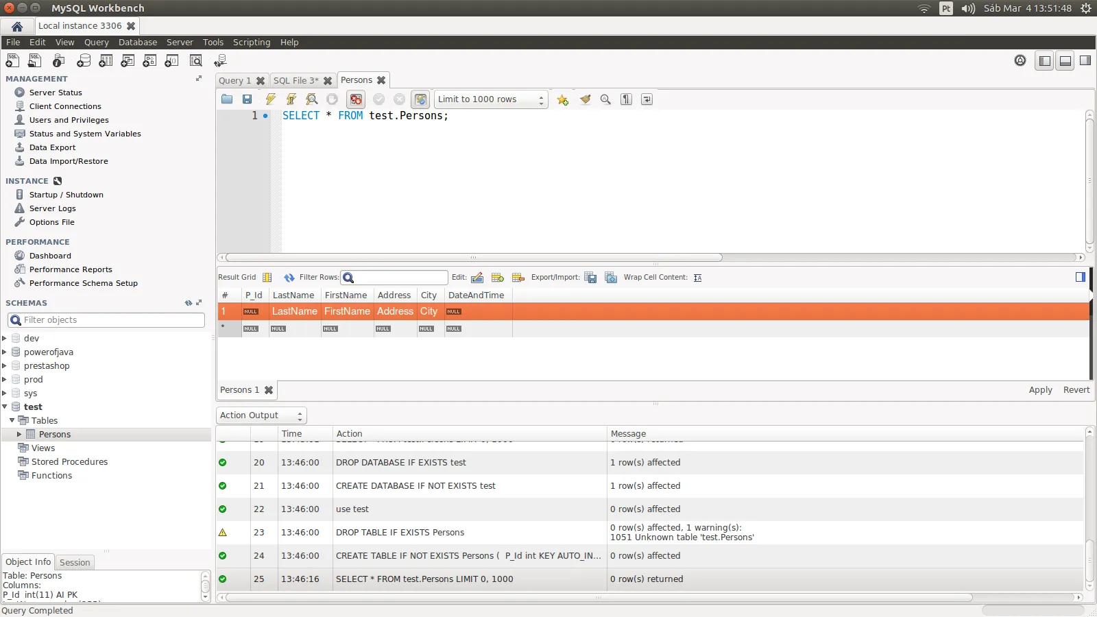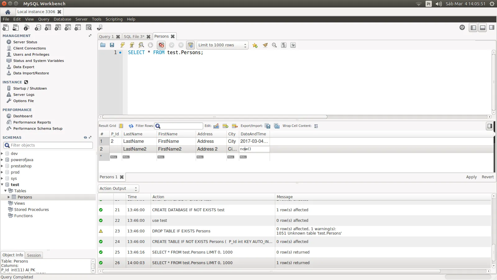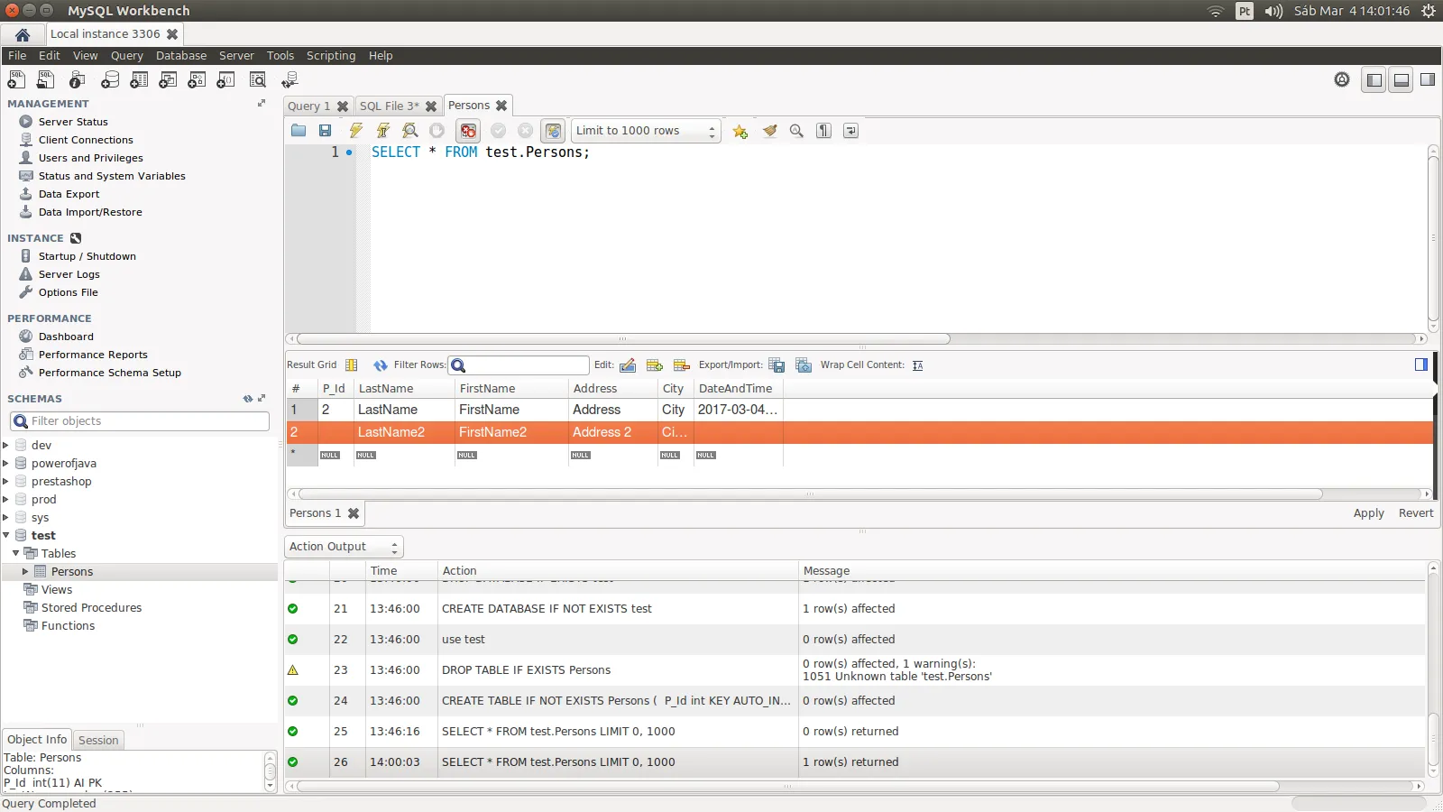 SELECT * FROM test.Persons;