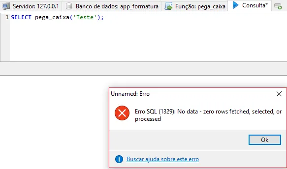 E ela está dando em uma mensagem de erro: