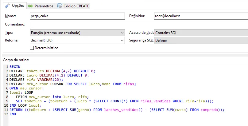Olá. Eu criei a seguinte função no meu banco: