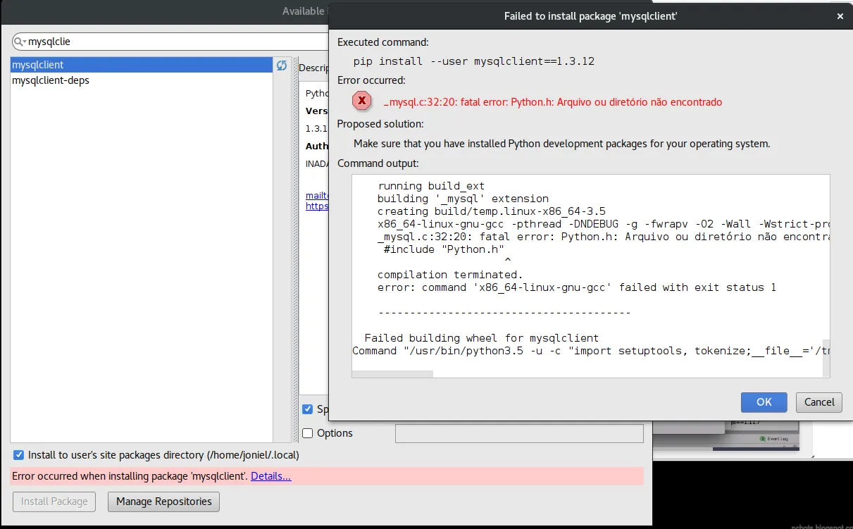 Mysqlclient - retornando erro