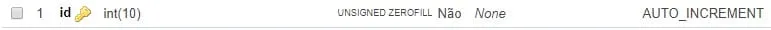 Conforme imagem em anexo, a coluna id é int(10) mas estava como ZEROFILL;