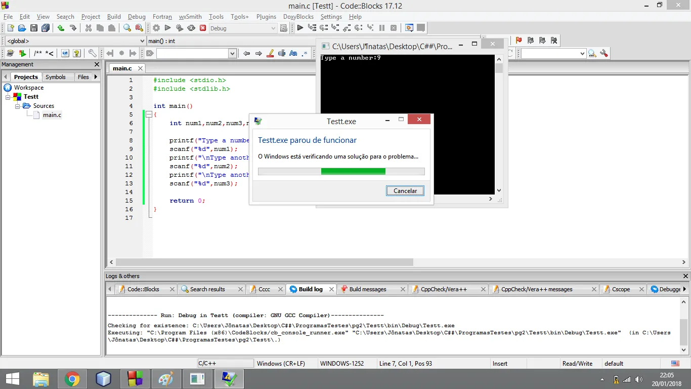 Eu escrevo um programa, copilo, abro o executável e assim que entro com um valor ele dá esse erro. Alguém já passou por isso ou sabe como resolver?