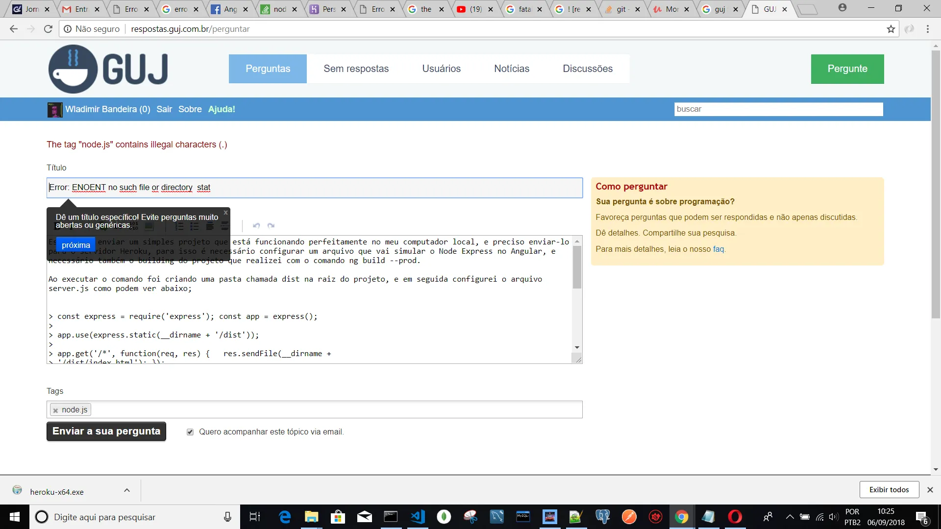 E ali em cima, em vermelho, está dizendo que a tag node.js é inválida, provavelmente é só tirar o . (ponto)