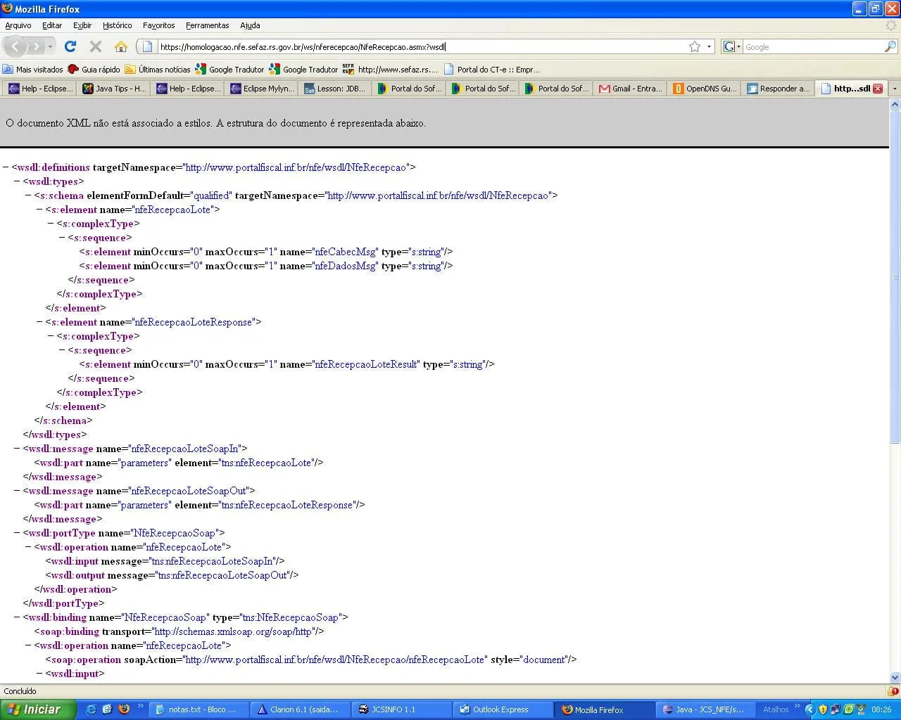 01/09/2008 15:42:50 : Retrieving Location: https://hom.nfe.fazenda.gov.br/NFeStatusServico/NFeStatusServico.asmx?wsdl