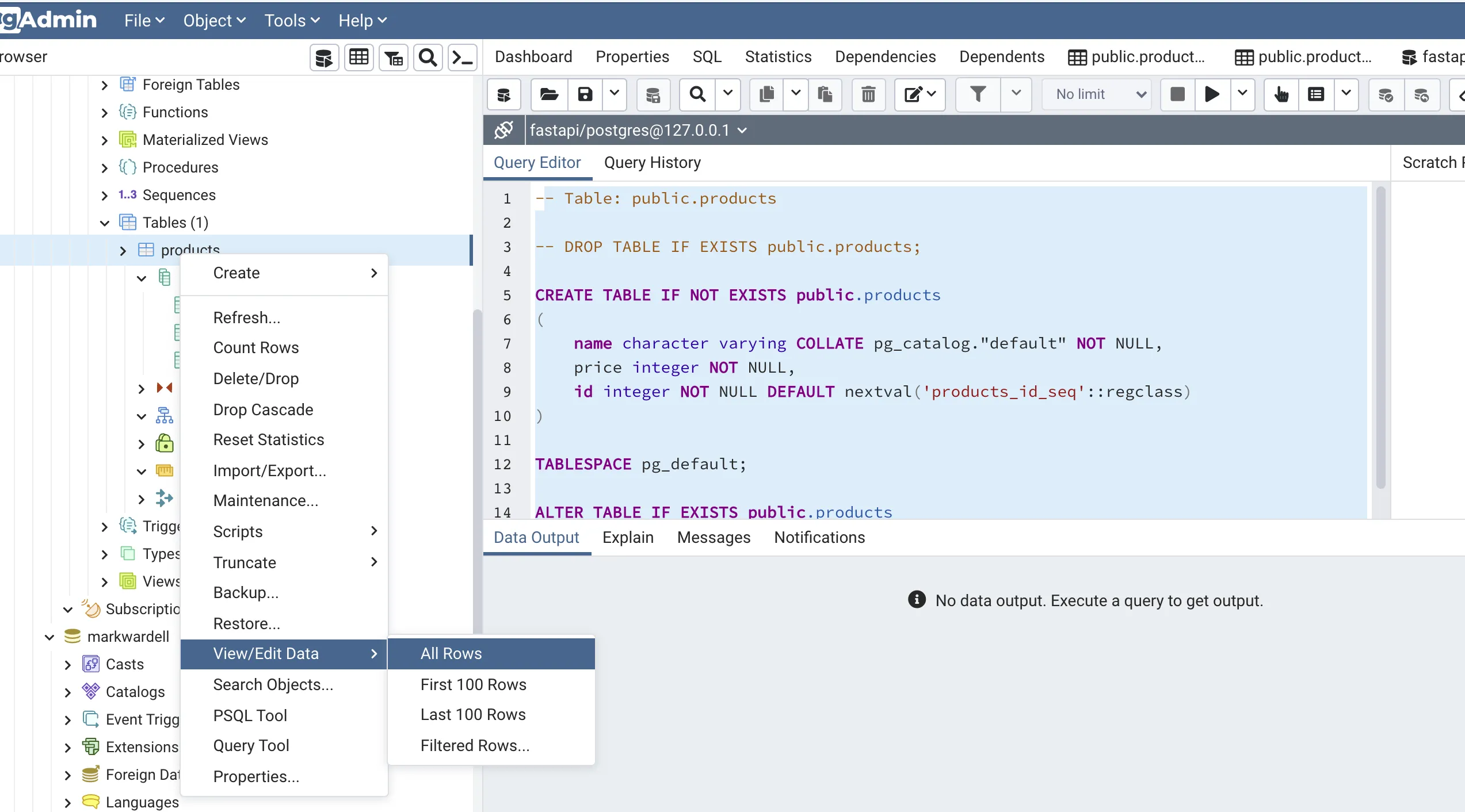 vai na sua tabela → clica com o botão direito → view/edit data → all rows