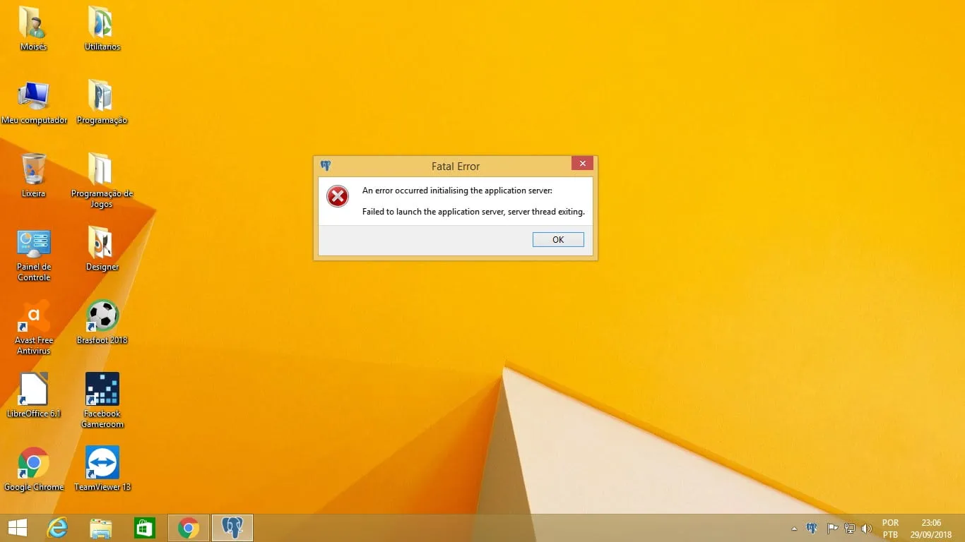 Eu já desinstalei o postgresql, depois baixei a versão 9.6 e instalei…mas apresentou a mesma coisa…voltei para versão 10 e continua com mesmo aviso. O estranho é que quando o computador estava com windows 7 32 bits o postgresql abriu normal pelo pgadmin 4.