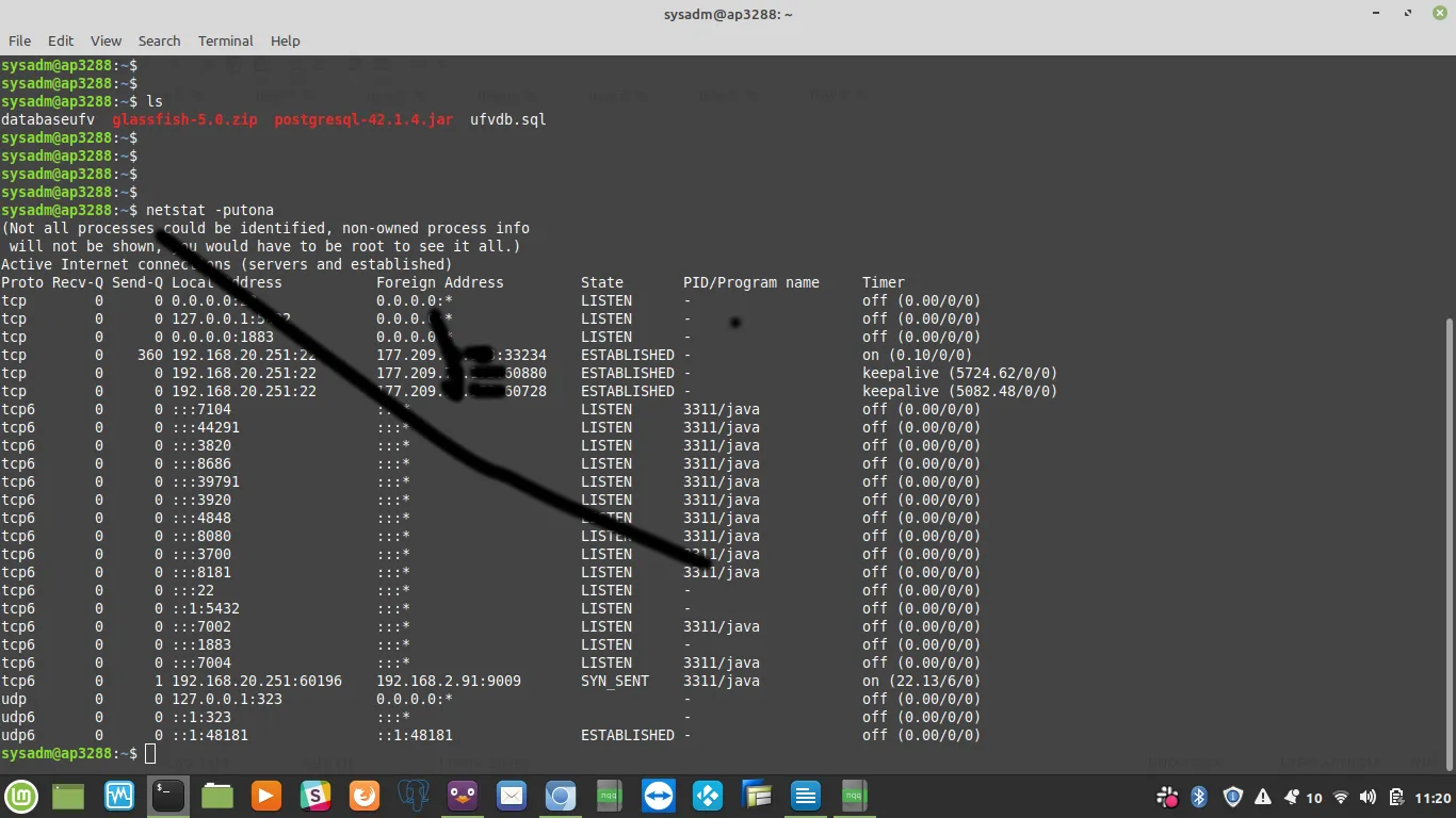 Pessoal estou com problema ao acessar a minha aplicação no glassfish, eu subi o server na maquina remota, fiz toda a configuraçao, quando subo ele consigo acessar o menu de administracao na 4848, só que na hora de acessar minha aplicacao pela :8080/nomeaplicacao recebo a mensagem PR_CONNECT_RESET_ERROR. Ja fiz de tudo, já fiz e refiz configurações, passei o server p/ minha máquina e tudo funciona normal, pesquisando vi que é possível que possa ser firewall, pedi o gerente de redes p/ liberar as portas do glassfish e mesmo assim o problema persiste… Vai aqui um output do meu netstat -putona :