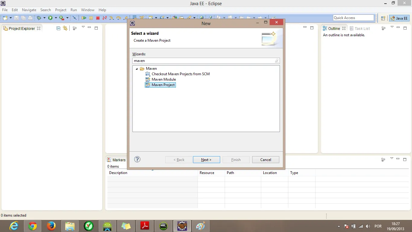Estou com um erro na criação do projeto maven no eclipse.