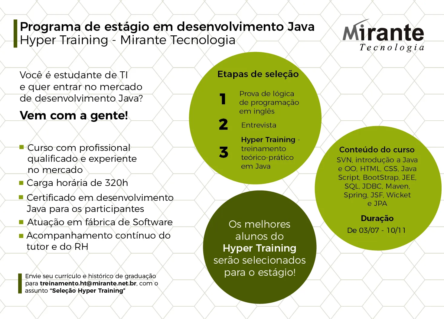 A Mirante Tecnologia abre vagas para o seu Programa de Estágio em Desenvolvimento Java de 2017!