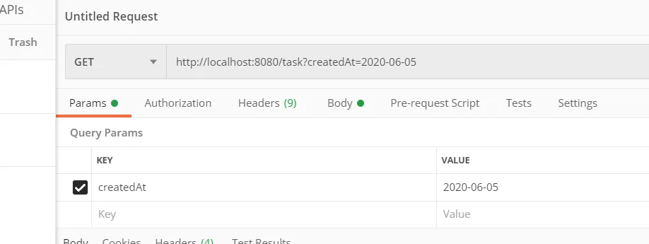 Existe uma forma de eu passar isso na URI ou só tem como eu passar assim? http://localhost:8080/task?createdAt=2020-05-10