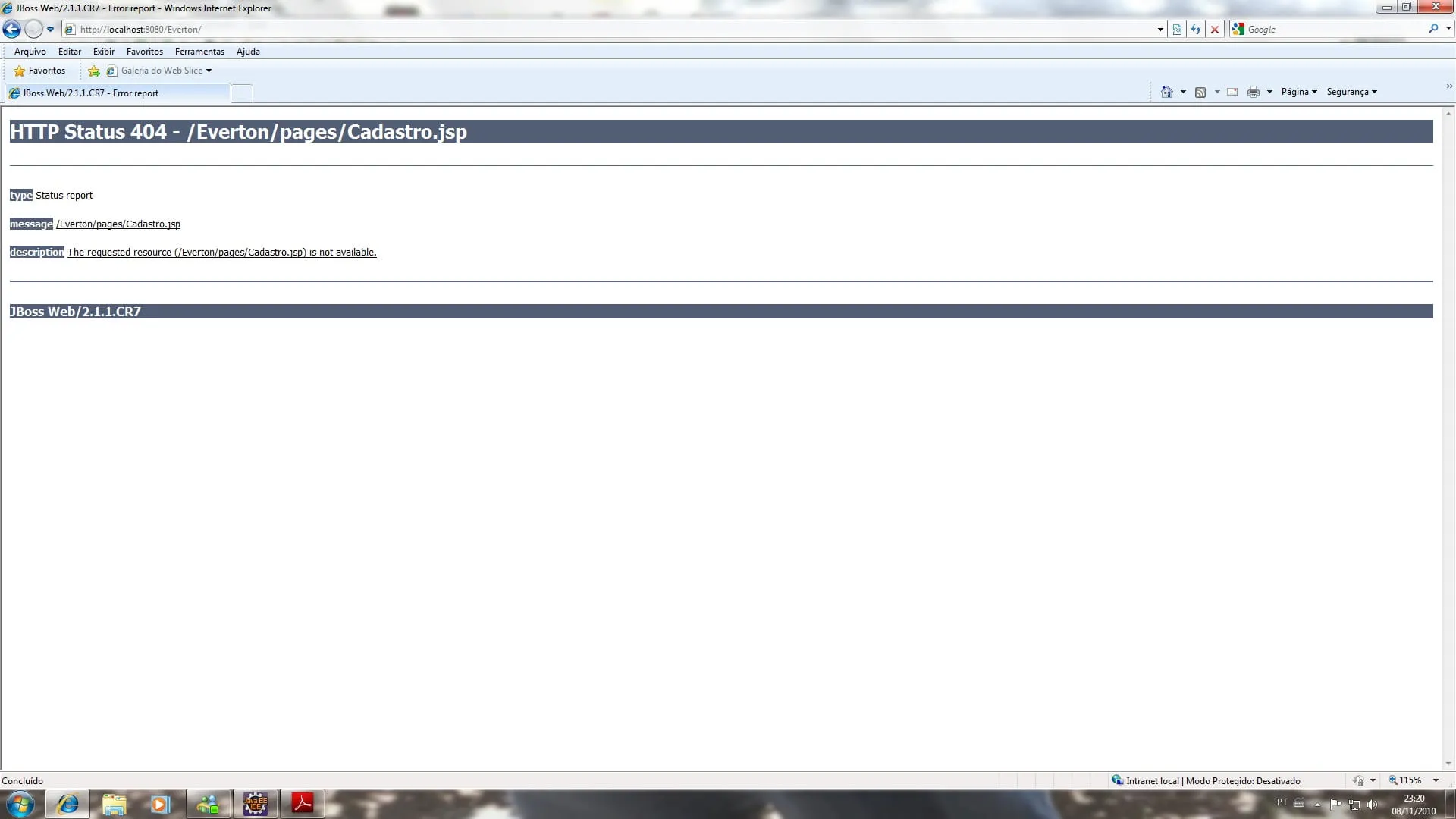Mas na imagem que você postou está com Cadastro.jsp.