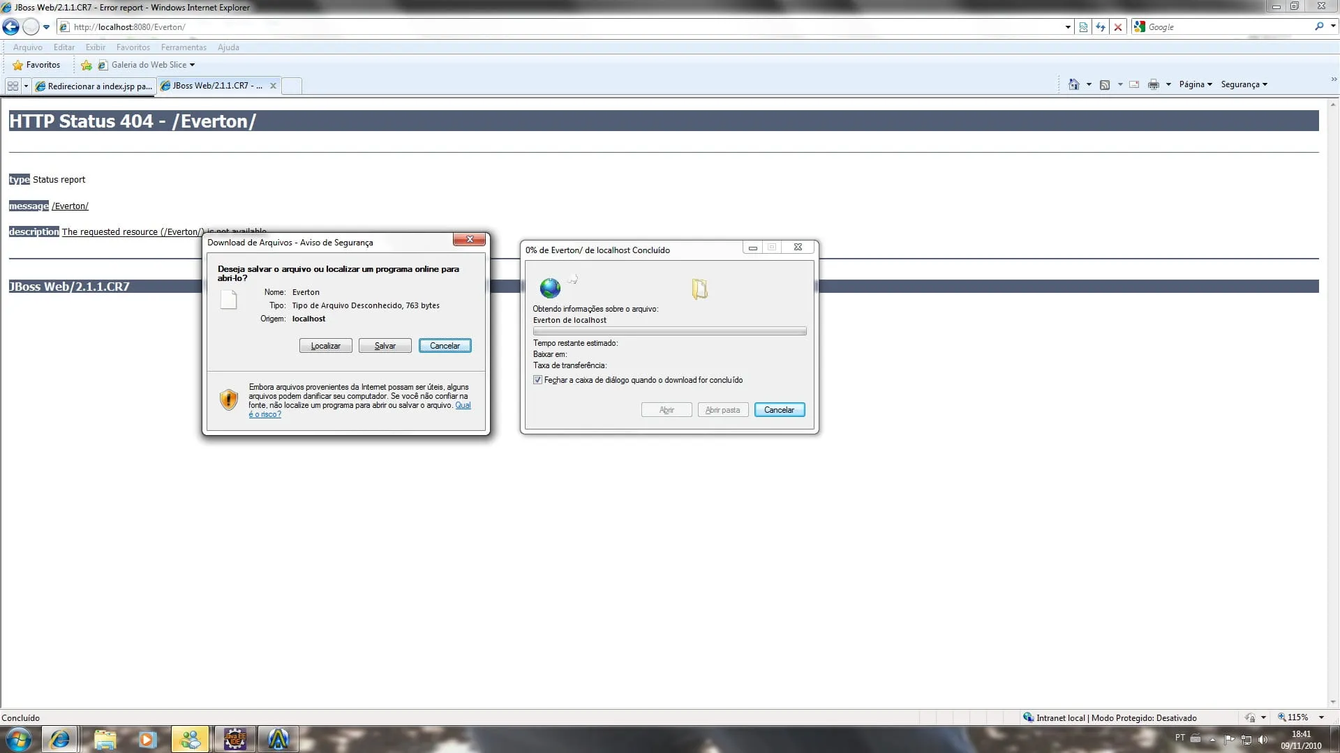 Consegui nao amigo =[, negocio ta feio kkk. Quando digito no browser http://localhost:8080/Everton, abre um dialog pra dl =[