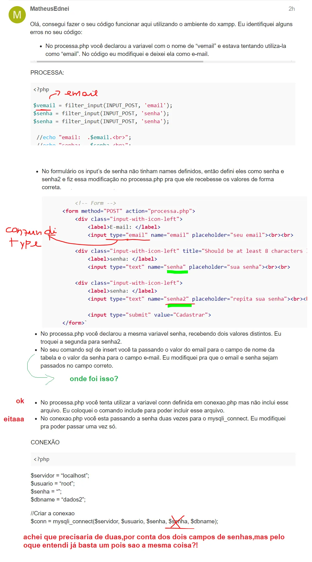 `<!-- Form --><formmethod="POST"action="processa.php"><divclass="input-with-icon-left"><label>E-mail:</label><inputtype="email"name="email"placeholder="seu email"><br><br><divclass="input-with-icon-left"title="Should be at least 8 characters long"data-tippy-placement="bottom"><label>senha:</label><inputtype="text"name="senha"placeholder="sua senha"><br><br><divclass="input-with-icon-left"><label>senha:</label><inputtype="text"name="senha2"placeholder="repita sua senha"><br><br><inputtype="submit"value="Cadastrar"></form>`