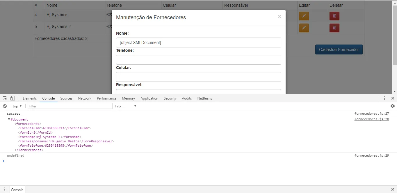 Porem não consigo pegar o valor dos atributos, por exemplo : fornecedores.fornTelefone