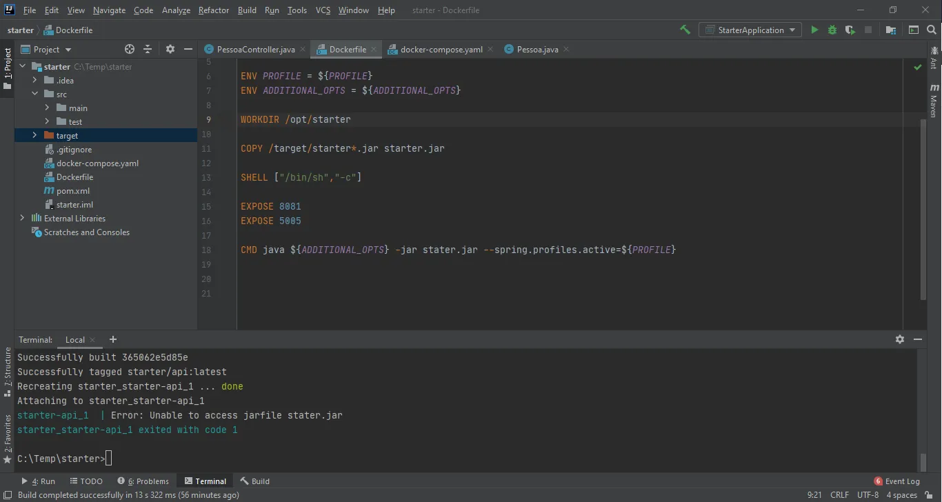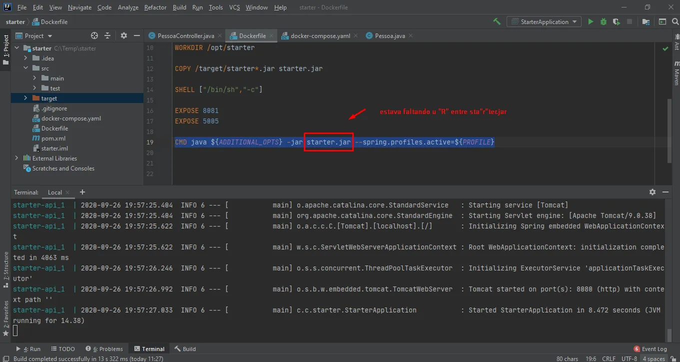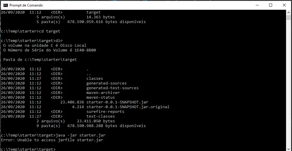 É SkyG0D, colocando java -jar starter-0.0.1-SNAPSHOT.jar mudou a mensagem: