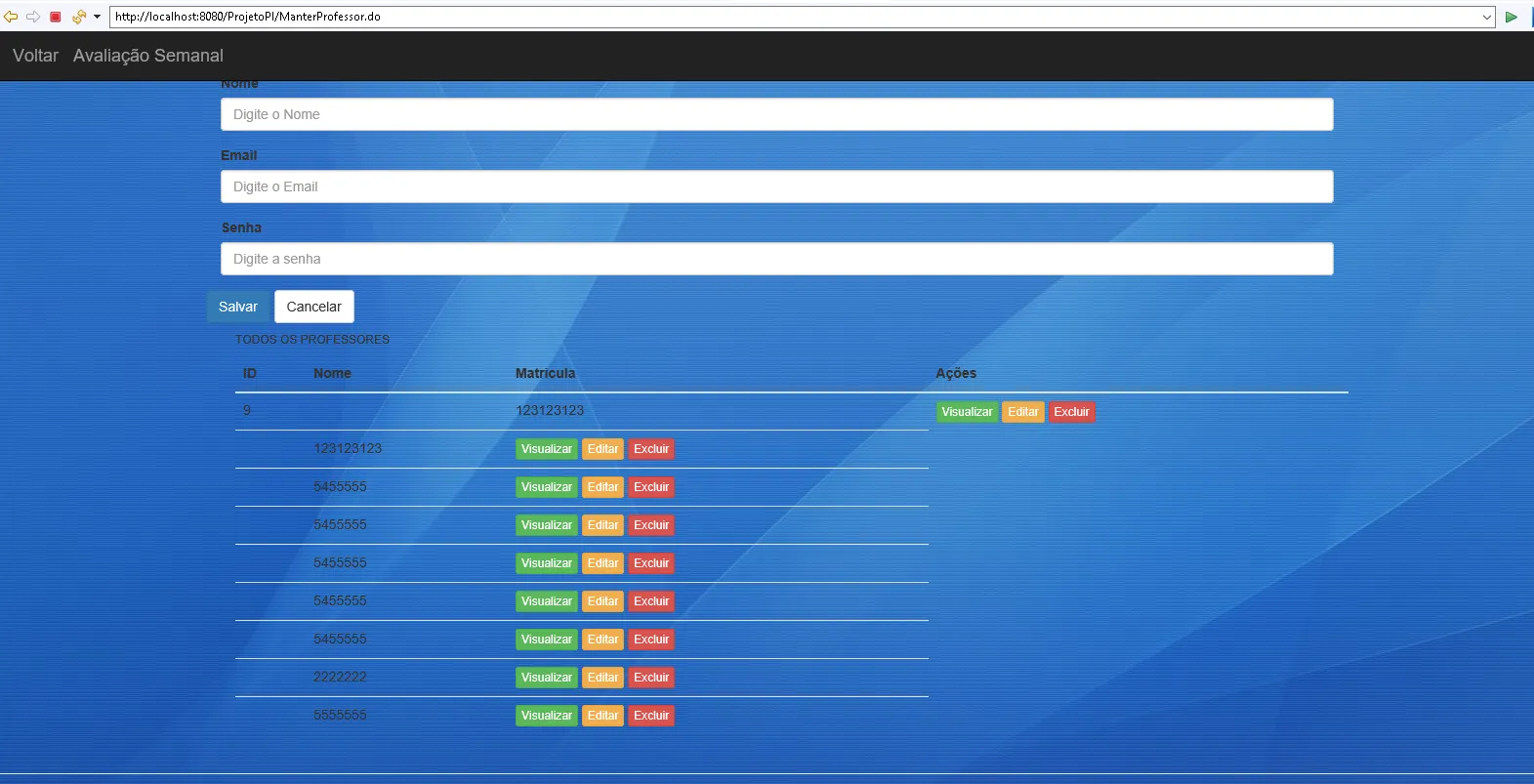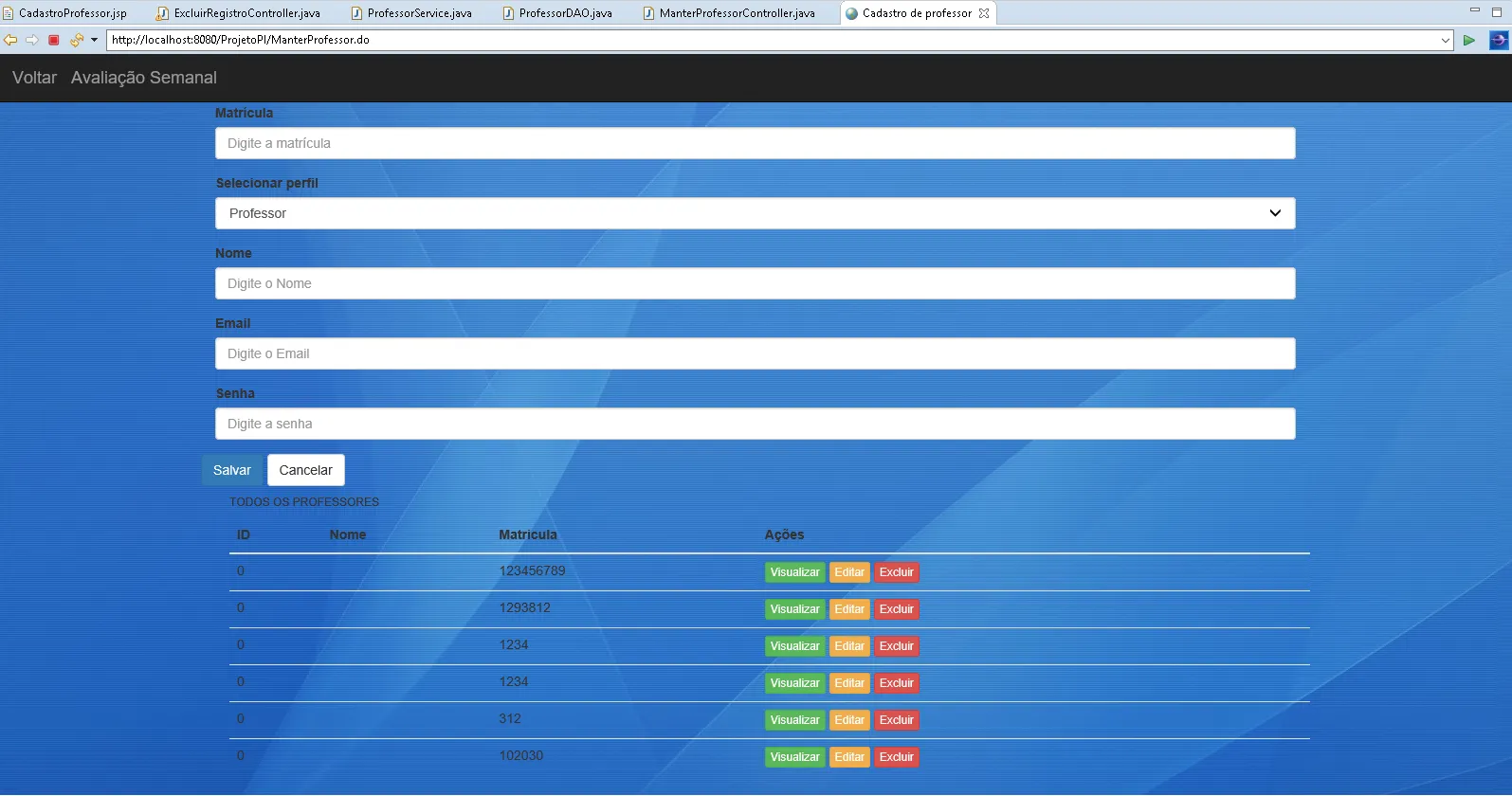 Esse atributo é fundamental na tela, para garantir que todas as ações correspondentes ao respectivo professor selecionado serão executadas de forma adequada e com o mínimo de esforço necessário.