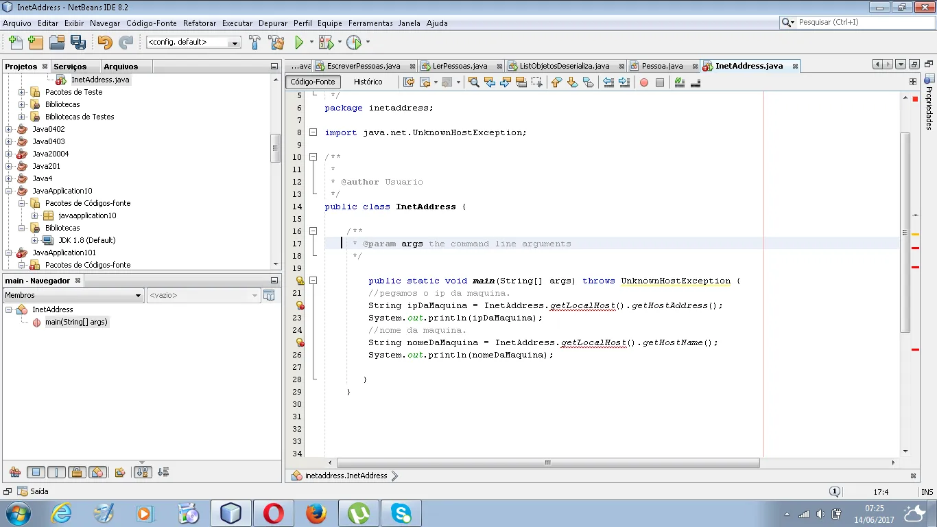 Clica na lâmpada que está com erro, provavelmente é erro de importação, já q nao estou vendo o import do InetAdress, vou enviar o código completo aqui: