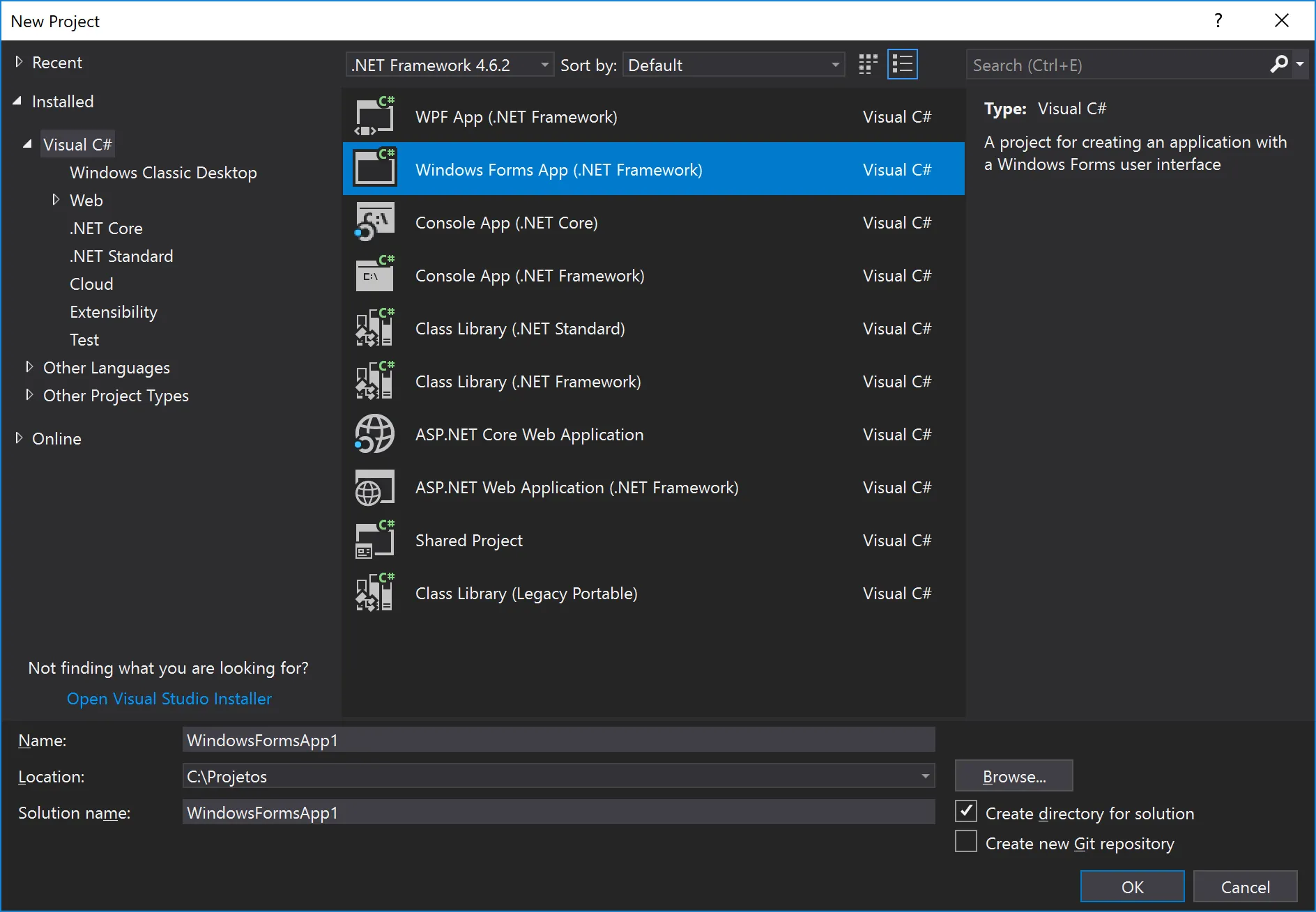 [RESOLVIDO] Não acho o Windows form no meu Visual studio communitiny 2017