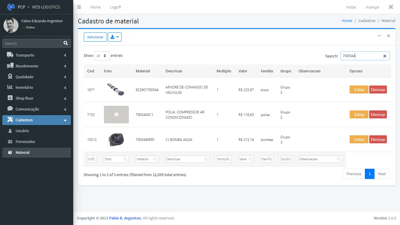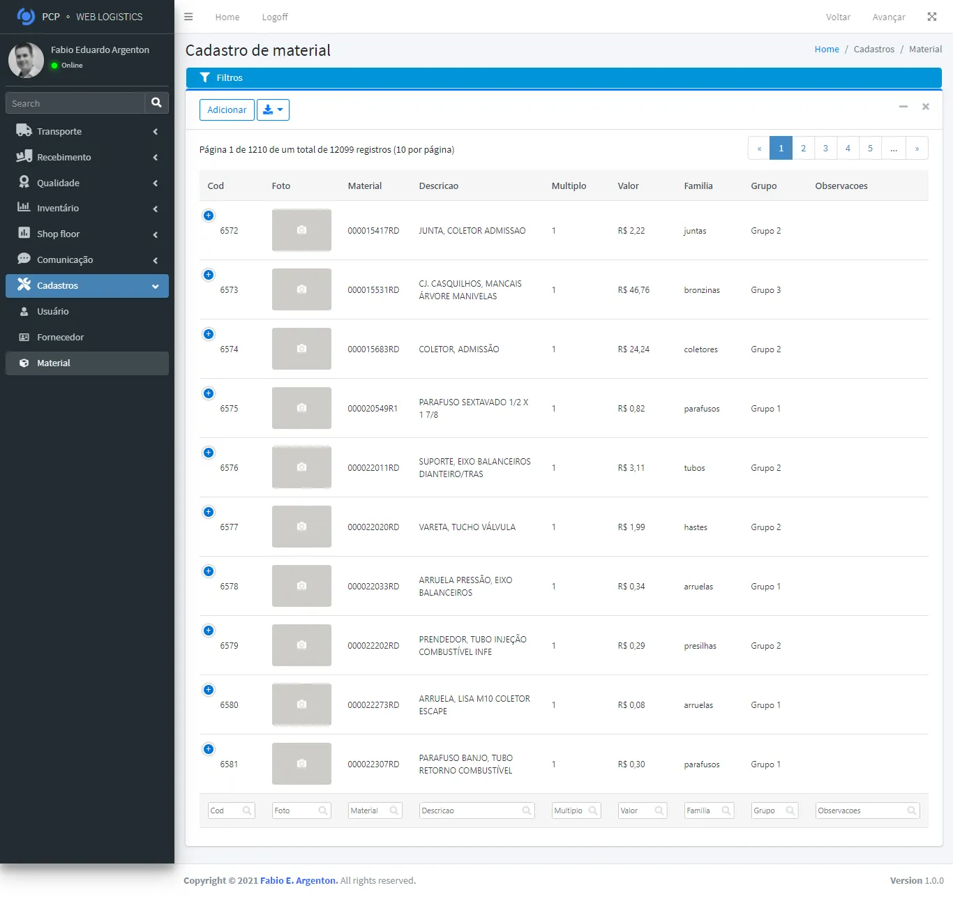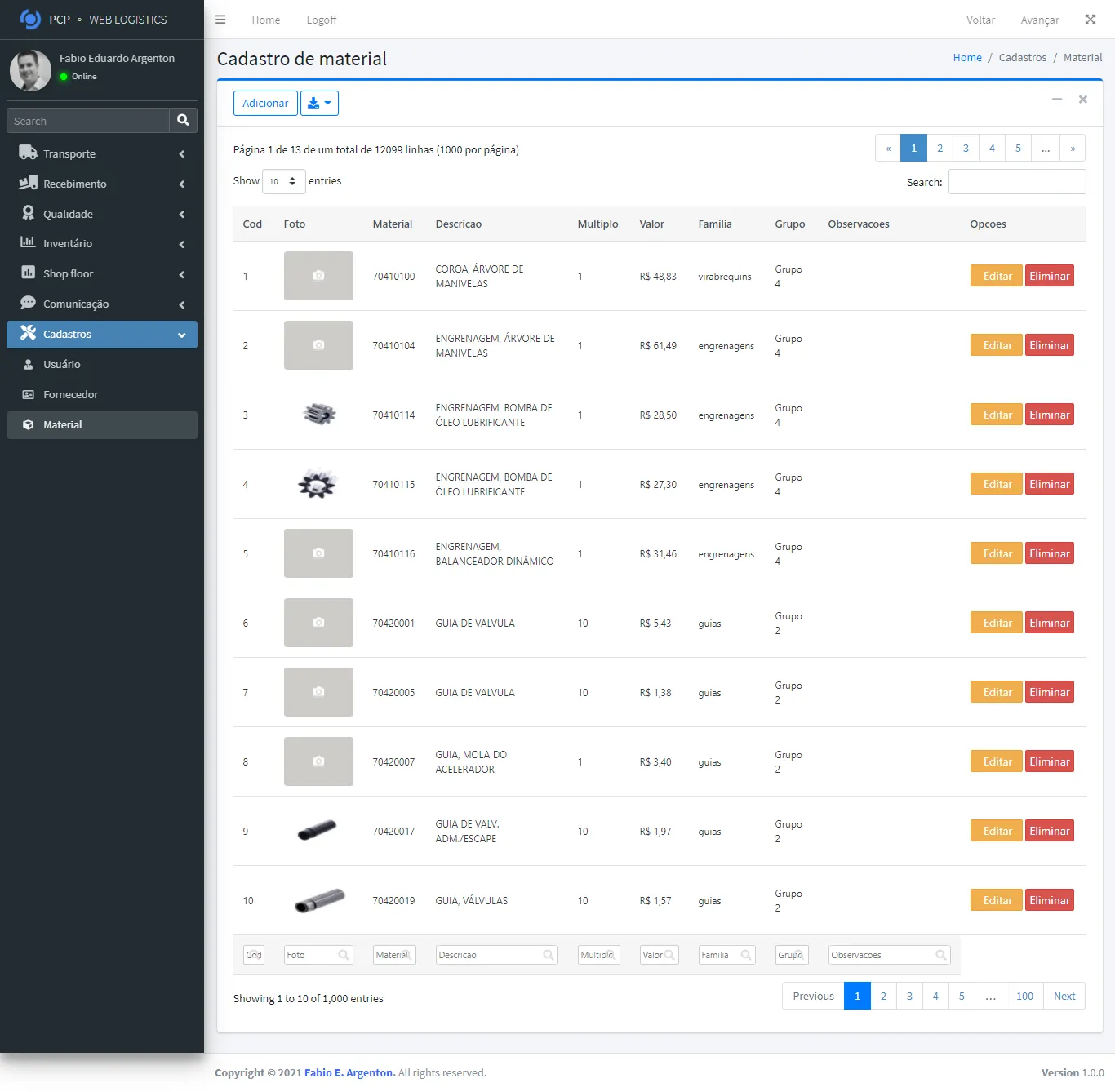 Ao acessar este endereço entramos no arquivo materiais.js que está na pasta dao e que contém a renderização das páginas .ejs , veja abaixo que ao acessar /material entramos na rota pageMaterial, nesta rota tenho uma função que recebe a consulta da tabela materiais e grava na variável materiais e depois passo essa variável materiais para o render da view como DTMaterial: