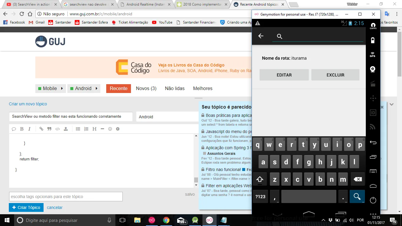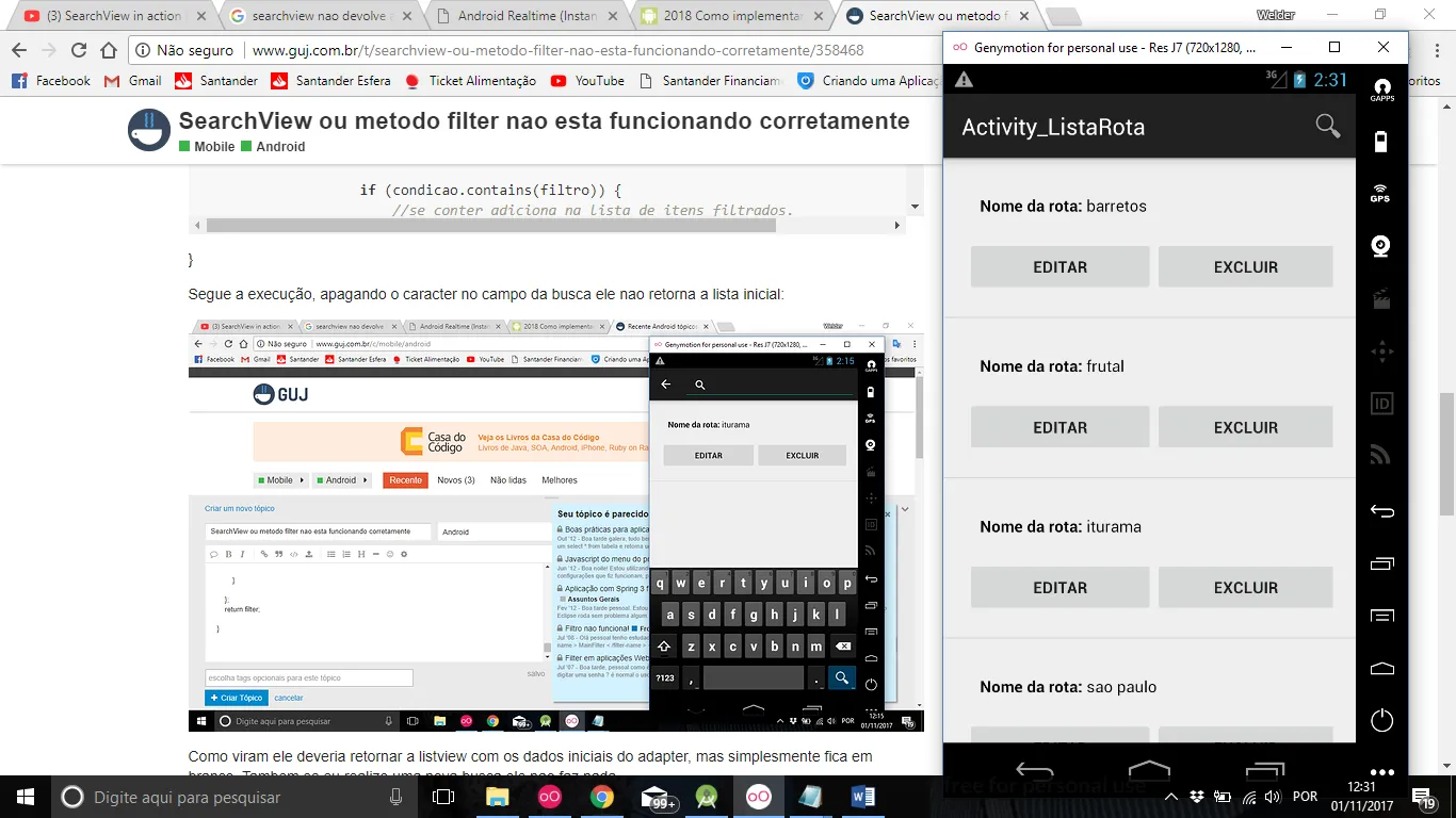 Segue a execução, apagando o caracter no campo da busca ele nao retorna a lista inicial: