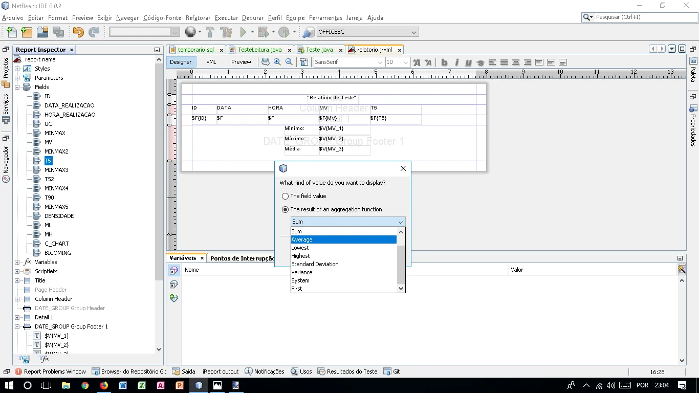 Como tirar a média, minimo e máximo de uma coluna em fields no ireport?
