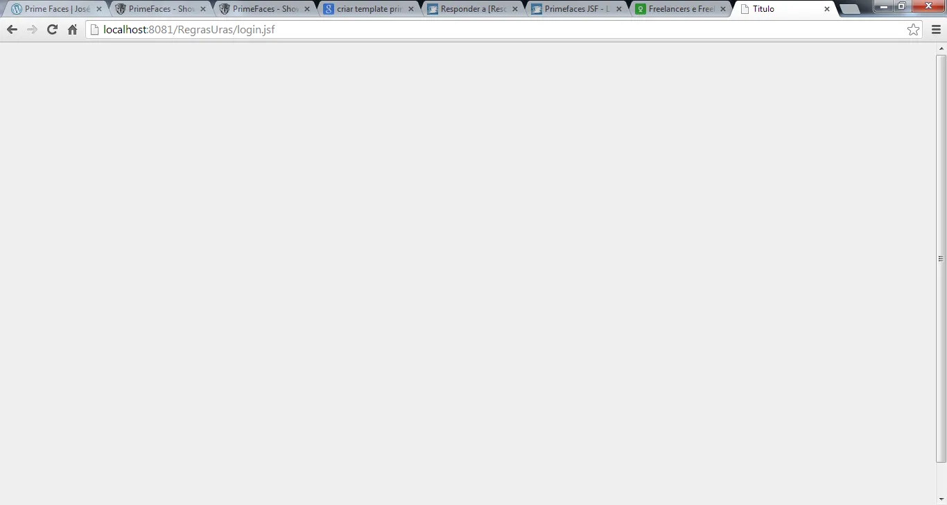 Cara, estou com este problema, mas minhas páginas estão corretas e mesmo assim não aparece nada no meu login.xhtml. Ela fica toda cinza que é a cor que eu defini dentro do style. O mais engraçado é que estava tudo funcionando perfeitamente e do nada parou. Por favor, sera que poderiam me ajudar sou novo em Primefaces.