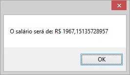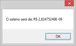MessageBox.Show("O salário será de: R$ " + salario);