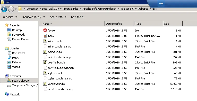 No servidor Tomcat. na pasta Program Files\Apache Software Foundation\Tomcat 8.5\webapps, criei a pasta dist.