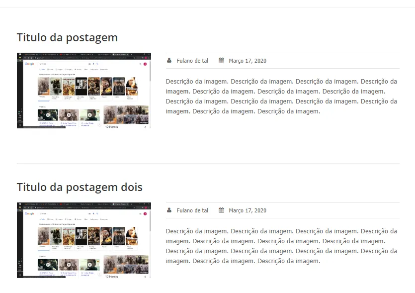 1° Linha no topo ocupando 100% do espaço para o Cabeçalho da Postagem.
