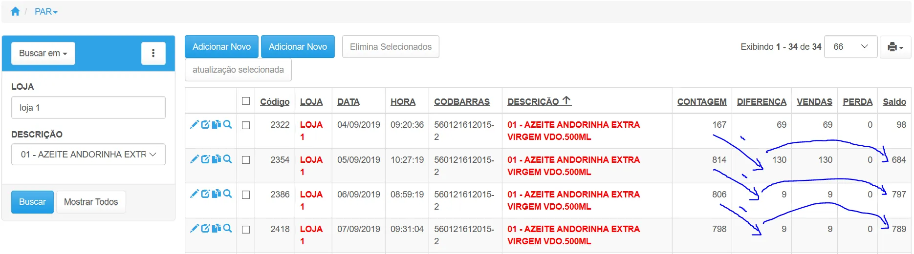 CONTAGEM - [DIFERENÇA] as Saldo