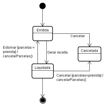 Tenho um CRUD de Nota Fiscal no meu sistema. Cada nota fiscal pode estar EMITIDA (acabou se ser cadastrada), CANCELADA e LIQUIDADA (ver o diagrama de estados e de classes).