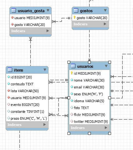 É basicamente o que eu estou fazendo. Me desculpe eu coloquei errado, não é uma relacionamento de UM PRA MUITOS, e sim de MUITOS PRA MUITOS, eu me enganei na hora, mas agora tu vai entender. Mas antes de tudo eu acho que devo explicar o sentido disso, porque eu achei desnecessário explicar no início do tópico, mas eu estou tentando ter uma tabela com o que os usuários gostam de acordo com o que eles colocam no campo conteúdo do item, como o nome de uma banda por exemplo, sacas? Mas gostaria que fosse tudo automático, e a razão pela qual eu estou fazendo esse relacionamento é para que quando dois ou mais usuários tenham o mesmo gosto, não hajam registros duplicados.