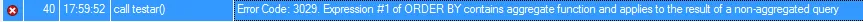 Eu criei um Stored Procedure com o mesmo conteúdo do evento, para testar. E quando eu o chamo, recebo esta mensagem: