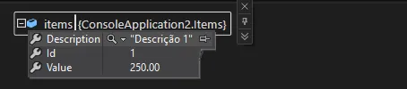 items.Description = "Descrição 1";