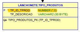 create table TIPO_PRODUTOS (tp_id_tprod integer not null primary key, tp_descricao varchar2 (30));