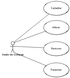 O Gestor de Compras pode cadastrar um novo produto, alterar, remover e pode pesquisar os dados do produto.