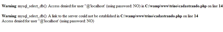 Warning - Acesso banco de dados MySQL - Access denied?