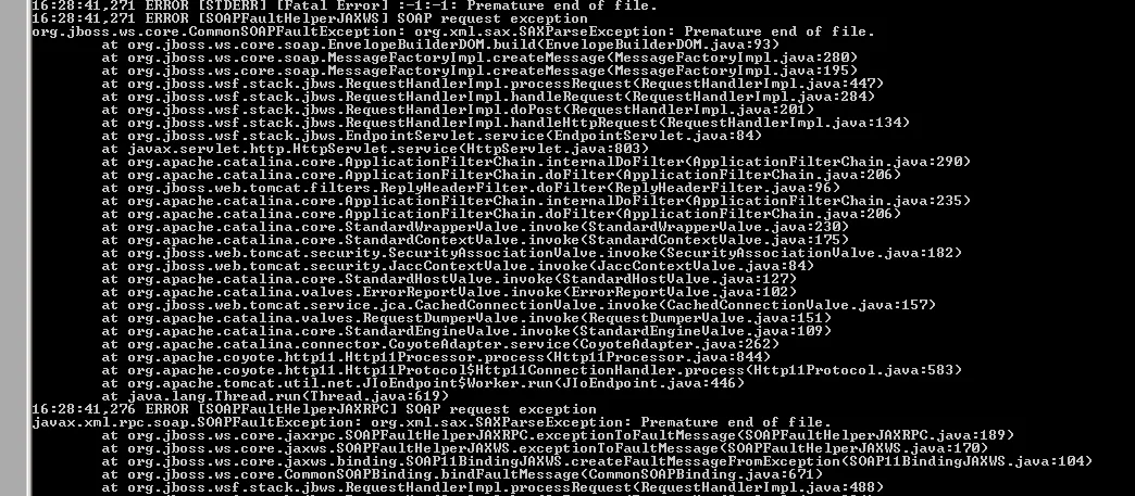 array(2) { [“faultcode”]=> &string(10) “env:Client” [“faultstring”]=> &string(53) “org.xml.sax.SAXParseException: Premature end of file.” }